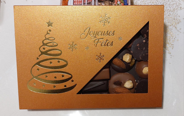 - Mendiants noir/lait, Orangettes, Citronettes, Rubis d'Aspères (1/2 coques cranberries), 1/2 coques noisettes, carrés d'amande, Grué de cacao noir/lait, ...
